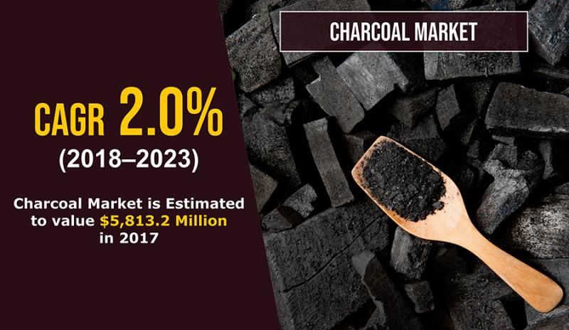 The rising demand for charcoal as a purification agent in water treatment plants and a metallurgical fuel in the mining and metal industry helped the charcoal market grow to $5,813.2 million in 2017. It is expected to advance at a CAGR of 2.0% during the forecast period (2018–2023). Charcoal is the black residue of carbon that is formed by the removal of water and other volatile components from biological materials such as wood. The slow heating of organic materials in the absence of oxygen produces charcoal.A major trend being observed in the charcoal market is the growing demand for the product for barbecue cuisine. To keep up with customers’ demand for innovative and unique dining experiences, the food industry is enthusiastically experimenting with barbecued food items. Developed nations, such as Germany and the U.S., have barbecued food as a tradition. This trend is now spreading to emerging economies, such as India and China. The smokiness and caramelized texture that charcoal adds to the food items is making the cooking technique popular among people, who are now increasingly opting for barbecued foods.
