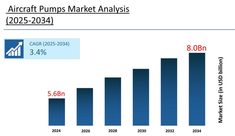 The Aircraft Pumps Market comprises fluid-handling pump systems critical to aircraft functions such as hydraulics, fuel delivery, lubrication, and environmental control. The market was valued at US$5.6 billion in 2024 and is forecast to reach US$8.0 billion by 2034, growing at a CAGR of 3.4% during 2025-2034. The single most important growth driver is expanding global aircraft fleets, as increased commercial air travel and defense modernization structurally elevate demand for…