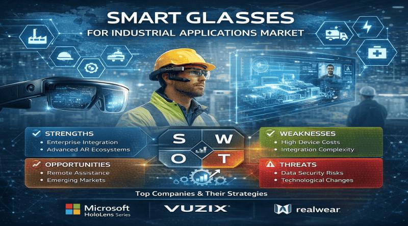 The Smart Glasses for Industrial Applications Market is rapidly transforming how enterprises approach frontline operations, maintenance, training, and remote collaboration. Designed to deliver real-time data overlays, guided workflows, and hands-free communication, smart glasses are becoming integral to Industry 4.0 initiatives. Adoption is accelerating across manufacturing, energy, logistics, healthcare, construction, and defense, as organizations prioritize productivity, worker safety, and operational continuity. This article analyzes the competitive landscape, evaluates leading companies through…