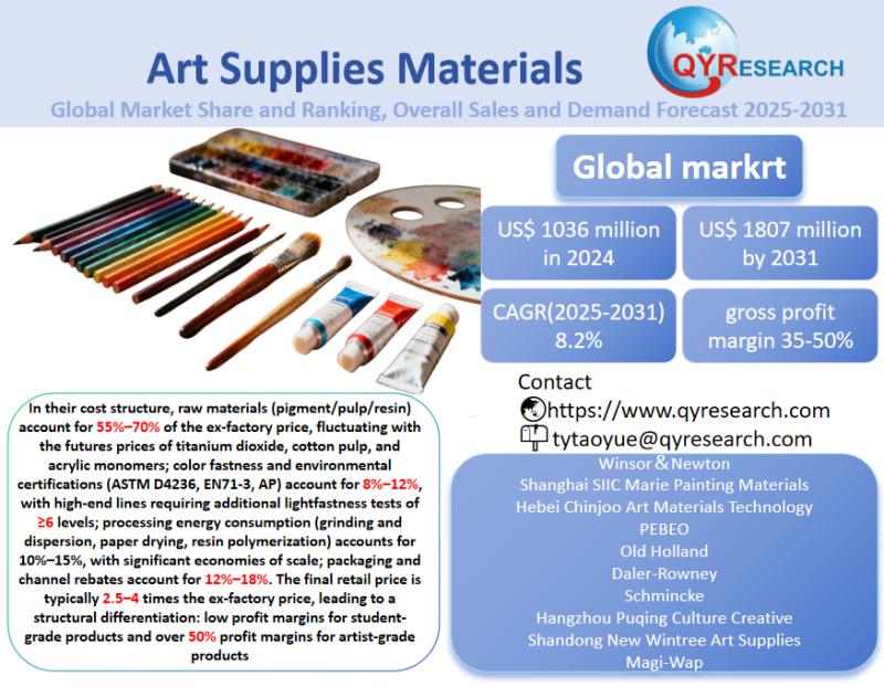 Global leading market research publisher QYResearch published the release of its latest report, "Art Supplies Materials - Global Market Share, Ranking, Sales, and Demand Forecast 2025-2031". This in-depth report provides a complete analysis of the global Art Supplies Materials market, offering critical insights into market size, share, demand, industry development status, and future forecasts. Whether you're a…