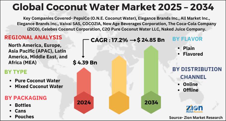 Coconut Water Market to Reach USD 24.85 Billion by 2034, Expanding at 17.2% CAGR