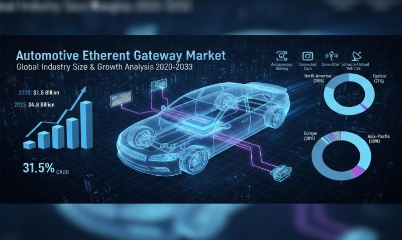 The latest study released on the Global Automotive Ethernet Gateway Market by HTF MI Research evaluates market size, trend, and forecast to 2033. The Automotive Ethernet Gateway study covers significant research data and proofs to be a handy resource document for managers, analysts, industry experts and other key people to have ready-to-access and self-analyzed study to help understand market trends, growth drivers, opportunities and upcoming challenges and about the competitors.