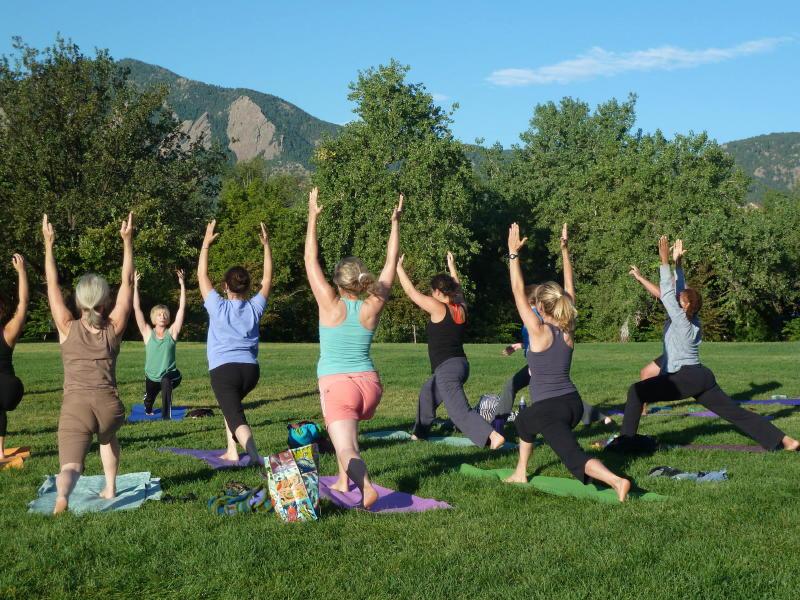 BOULDER, CO – September 13, 2011. A sun salutation is much more real and alive when done outdoors under the early morning glow of the Flatirons. From their lofty perch atop Scott Carpenter Park, the boot camp folks at Fitness For Living provides such an opportunity at their new PowerFit Yoga Camps. After a year of planning, they have brought this innovative open-air yoga program to Boulder. The 5-week camps meet 2 mornings a week with 3 class times to choose from.PowerFit Yoga is a unique blend of yoga and conditioning interwoven into a mind-calming, body-challenging and spirit-soaring experience. Based on a flowing Vinyasa-style yoga, PowerFit Yoga incorporates the best principles yoga, Pilates and sports conditioning. Each class is different and is appropriate for the first-timer and experienced yoga practitioner alike.