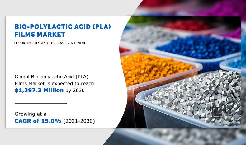 According to the report published by Allied Market Research, the global bio-polylactic acid films market generated $354.8 million in 2020 and is projected to reach $1.39 billion by 2030, growing at a CAGR of 15.0% from 2021 to 2030. The report provides an in-depth analysis of the top investment pockets, top winning strategies, drivers & opportunities, market size & estimations, competitive scenario, and wavering market trends.