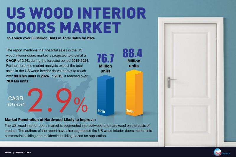 Los Angeles, February 10, 2020 -A report authored by QY Research digs deep into the growth potential and several other crucial aspects of the US wood interior doors market. Bearing the title "United States Wood Interior Doors Market Report 2019," the report mentions that the total sales in the US wood interior doors market is projected to grow at a CAGR of 2.9% during the forecast period 2019-2024. Furthermore, the market analysts expect the total sales in the US wood interior doors market to reach over 80.0 Mn units in 2024. In 2019, it reached over 70.0 Mn units.Key Players