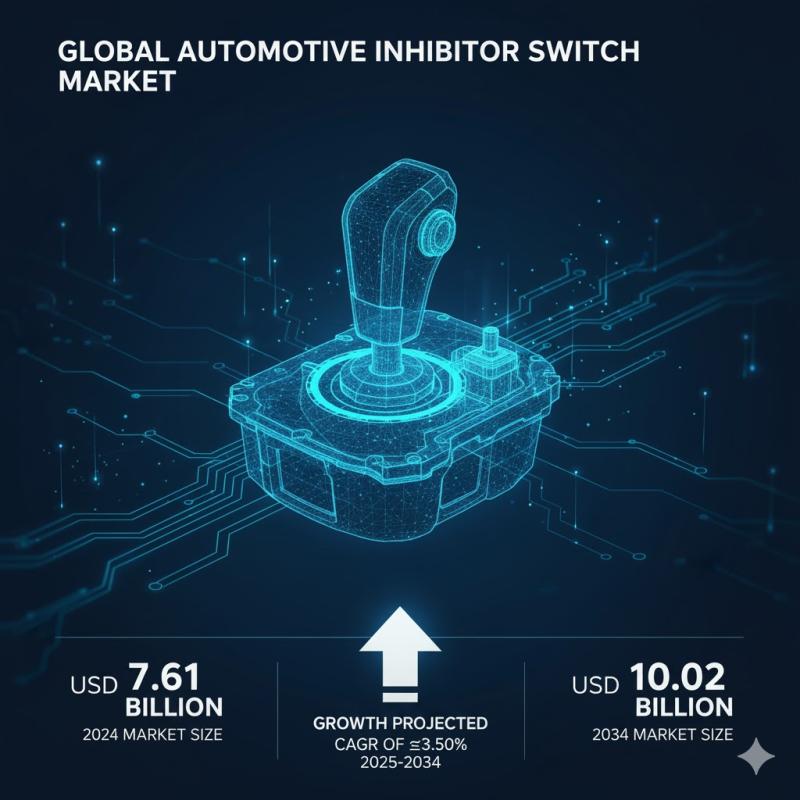 The global automotive inhibitor switch market was valued at approximately USD 7.61 billion in 2024 and is projected to reach around USD 10.02 billion by 2034, growing at a compound annual growth rate (CAGR) of roughly 3.5% between 2025 and 2034.