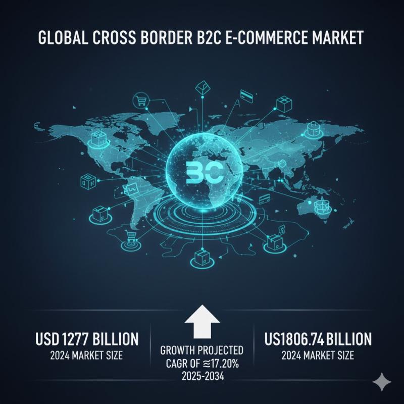 The global cross-border B2C e-commerce market was valued at approximately USD 1,271.77 billion in 2024 and is projected to reach around USD 8,606.74 billion by 2034, reflecting a robust compound annual growth rate (CAGR) of roughly 27% between 2025 and 2034. The market has witnessed rapid expansion due to the proliferation of digital technologies, rising internet penetration, and the growing demand for international products among consumers worldwide.