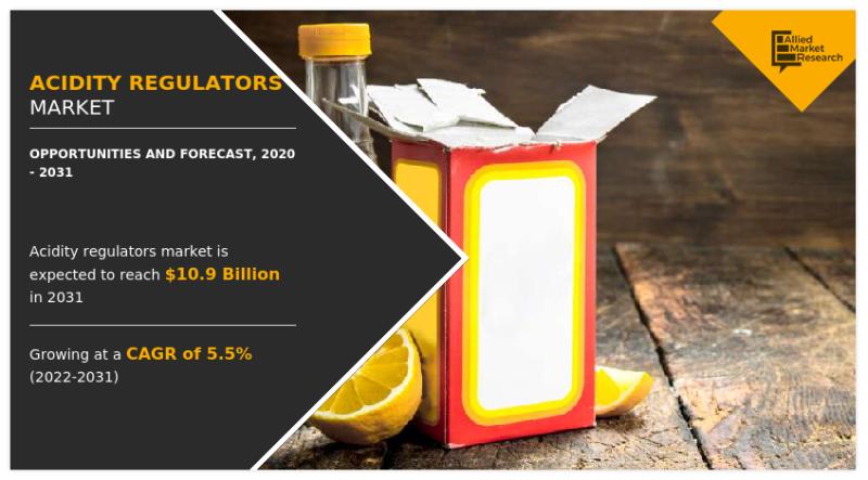 Acidity regulators market size was valued at $5,871.30 million in 2020, and is estimated to reach $10,899.60 million by 2031, growing at a CAGR of 5.5% from 2022 to 2031.