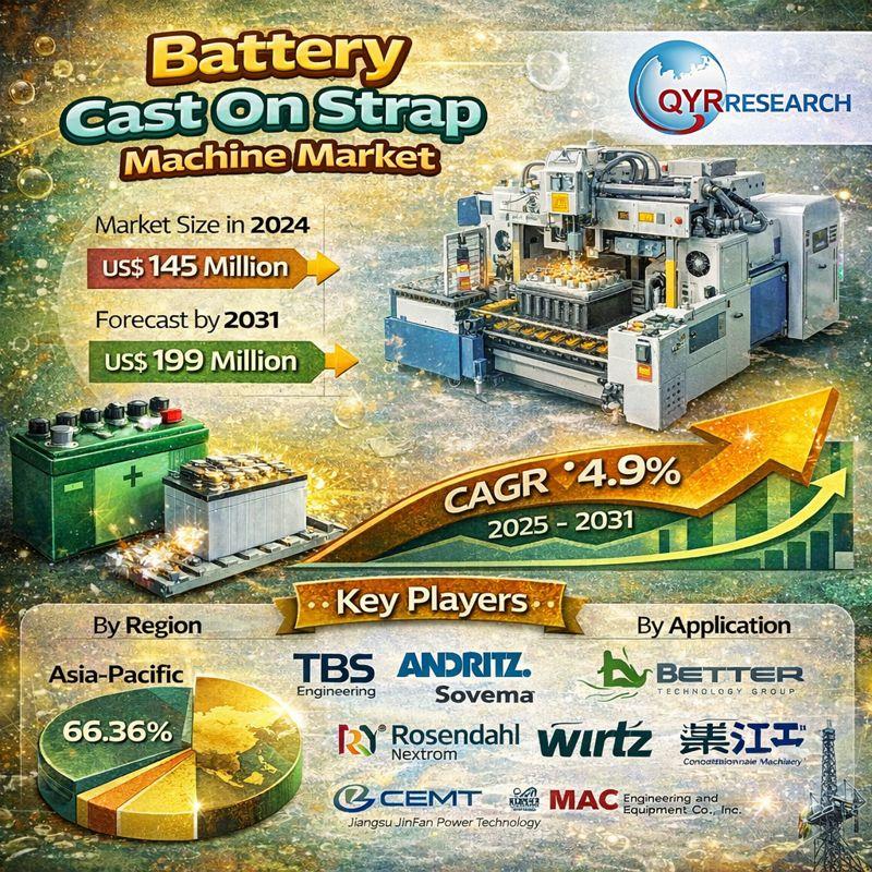 According to QY Research, the newly released report titled "Battery Cast On Strap Machine Market Share and Ranking, Overall Sales and Demand Forecast…