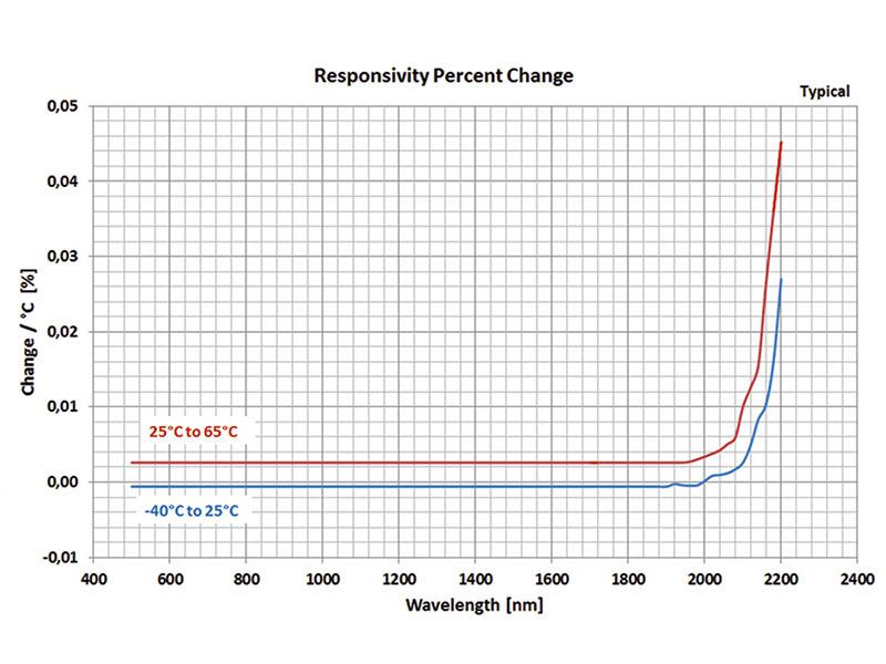 The photodiode sensors have a panchromatic detector with a sensitivity range of 450 nm to 2000 nm and a reduced temperature dependence.