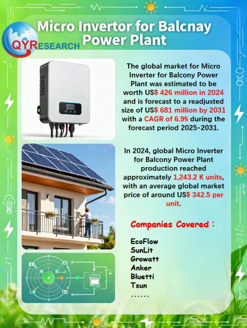 The global market for Micro Inverter for Balcony Power Plant was estimated to be worth US$ 426 million in 2024 and is forecast to a readjusted size of US$ 681 million by 2031 with a CAGR of 6.9% during the forecast period 2025-2031.