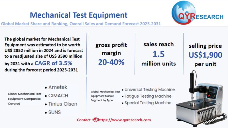 Global leading market research publisher QYResearch published the release of its latest report, "Mechanical Test Equipment - Global Market Share, Ranking, Sales, and Demand Forecast 2025-2031". This in-depth report provides a complete analysis of the global Mechanical Test Equipment market, offering critical insights into market size, share, demand, industry development status, and future forecasts. Whether you're a…