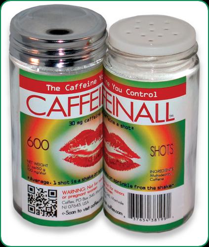 These benefits, delivered in a handy glass shaker, make CaffeinAll™ the world’s first gourmet caffeine product. Containing 600 shots and sold at $19.95, it delivers each 30 mg caffeine shot for only three cents.
