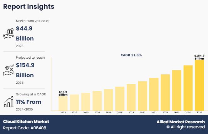 The "cloud kitchen industry" was valued at $44.9 billion in 2023, and is estimated to reach $154.9 billion by 2035, growing with a CAGR of 11.0% from 2024 to 2035.