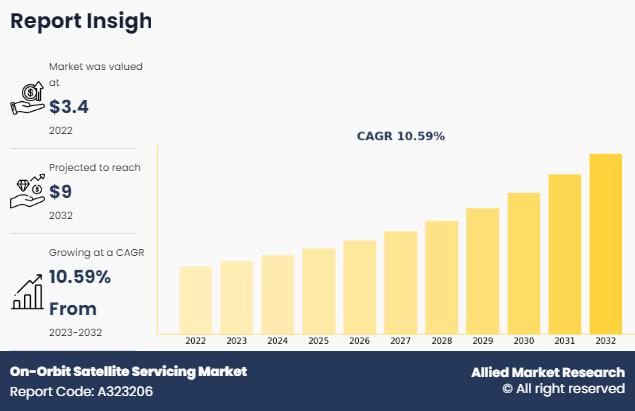 According to the report, the "on-orbit satellite servicing market" was valued at $3.4 billion in 2022, and is estimated to reach $9.0 billion by 2032, growing at a CAGR of 10.59% from 2023 to 2032.