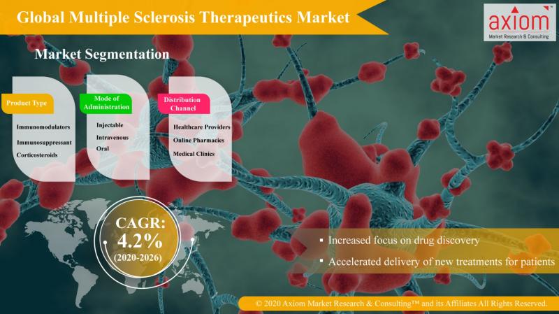 Wilmington, August 06, 2020: Axiom Market Research & Consulting™ added a report on global multiple sclerosis therapeutics market which includes study on product type, mode of administration, and distribution channel across various countries of key regions across the globe. The global multiple sclerosis therapeutics market was projected to grow at a CAGR of 4.02% for the forecast period 2020 to 2026. The global market is estimated and forecasted in terms of revenue (USD Million) generated by the multiple sclerosis therapeutics market.Download Sample Report: https://www.axiommrc.com/requested_sample/10152-multiple-sclerosis-therapeutics-market-report