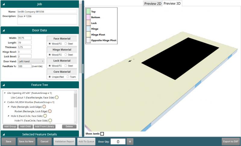 Petaluma, CA – September 8, 2020: Kval Inc., a manufacturer of high-production CNC door machinery specializing in residential prehung and architectural applications, announced today that the U.S. Patent Office has issued a patent approval for KvalCAM—a computer-aided machine software (CAM) developed and designed in-house by Kval’s team of engineers: Patent No. 10,739,749.The addition of KvalCAM software offers a state-of-the-art platform for door job management, powerful machine line integration, precise tooling configuration, multiple database selection, and automatic program adjustment for material variation. The advantage of an intuitive graphical interface allows users to easily program hardware templates including hinges, mortise locks, card locks, exit devices, overhead closers, door bottoms, and flush bolts without knowledge of G-Code or other programming languages.