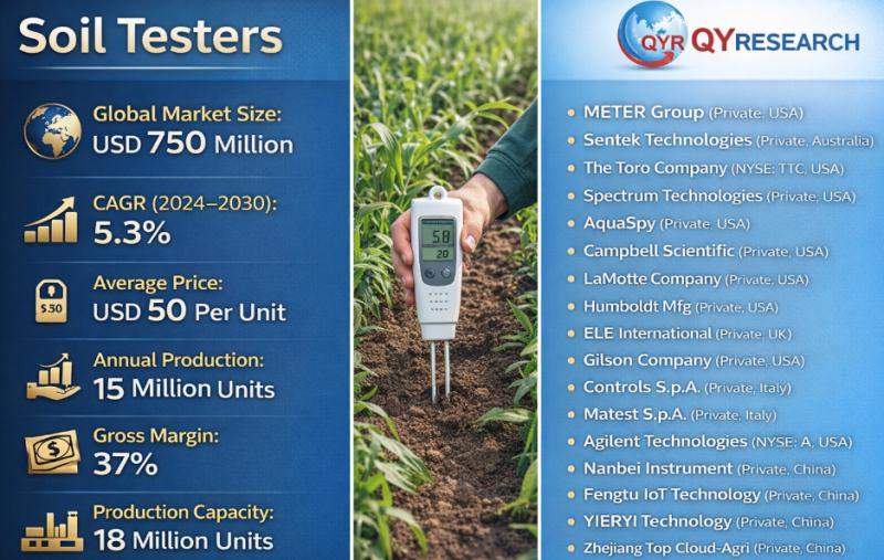 QY Research has released a comprehensive new market report on Soil Testers, devices used to devices used to measure and analyze soil properties to assess soil health, fertility, and suitability for agriculture, landscaping, construction, or environmental studies. They evaluate parameters such as soil moisture, pH, nutrient levels (N-P-K), salinity, temperature, and electrical conductivity, helping users make informed decisions about irrigation, fertilization, crop selection, and land management.