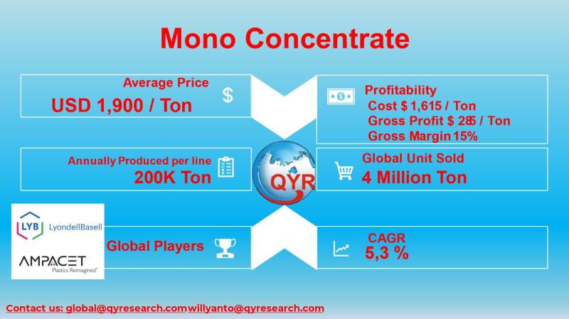 Mono Concentrate refers to industrial chemical concentrate products used as precursors, additives, or intermediates in downstream chemical manufacturing (e.g., chemical intermediates like mono ethylene glycol, color masterbatch concentrates, polymer additives).