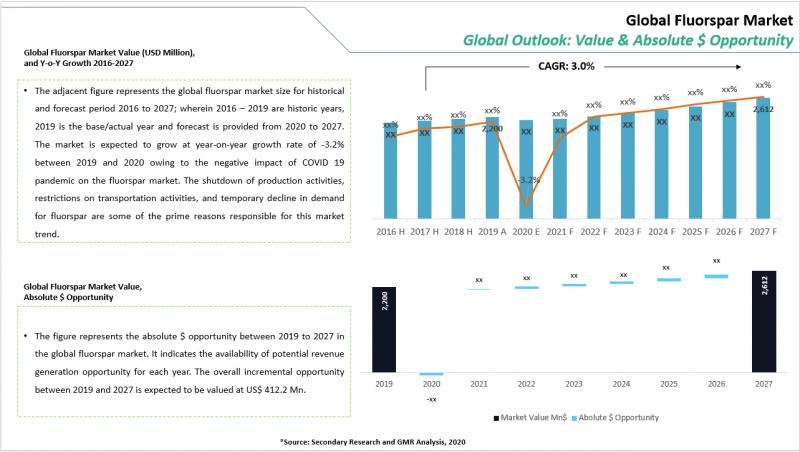 In the year 2020, the fluorspar market is witnessing a downtrend owing to the negative impact of the COVID 19 pandemic. The COVID-19 pandemic has a rapid and serious impact on the global fluorspar market, which has increased the risk of shortages of goods and labor. Moreover, the pandemic situation has led to the closure of several businesses reducing the demand in the world, which in turn, is impeding the various industry. The decrease in the supply chain of raw materials has impacted the growth of the fluorspar market. The slowdown in the production of parts and its raw materials have given rise to supply chain disruption in the fluorspar market. Many countries have closed their national borders and have enforced lockdowns since January 2020, which in turn, is hindering the market growth. The pandemic has hampered the manufacturing sector and economies globally. There is no clarity on the deeper effects has been assessed to date.
