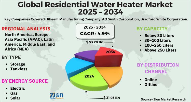 Residential Water Heater Market to Reach USD 53.29 Billion by 2034, Expanding at …