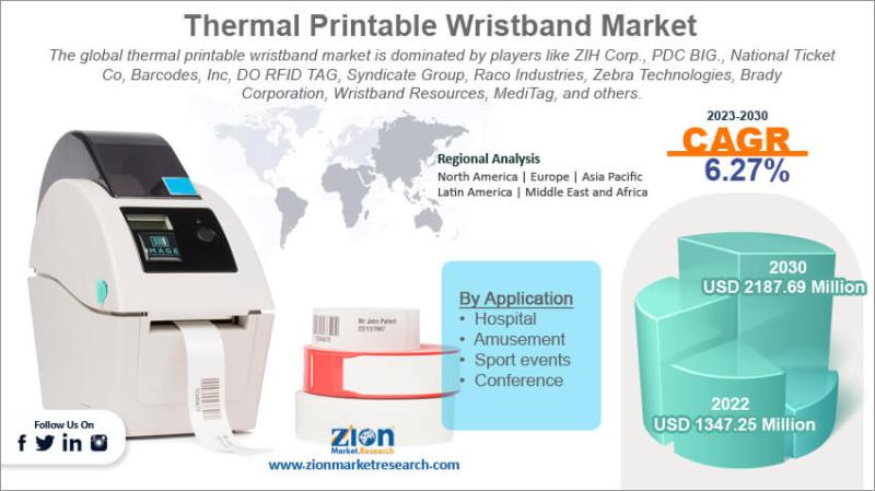 The global thermal printable wristband market was valued at USD 1347.25 million in 2022 and is projected to reach USD 2187.69 million by 2030, expanding at a CAGR of around 6.27% between 2023 and 2030. Growing adoption in healthcare for patient identification and in events management for attendee tracking and access control are the primary drivers fueling this growth.