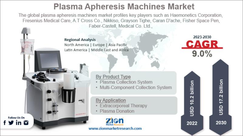 The global plasma apheresis machines market was valued at USD 10.2 billion in 2022 and is expected to reach USD 17.2 billion by 2030, expanding at a CAGR of nearly 9% between 2023 and 2030. The surge is primarily driven by the rising prevalence of chronic and autoimmune disorders, alongside technological innovations in medical devices.