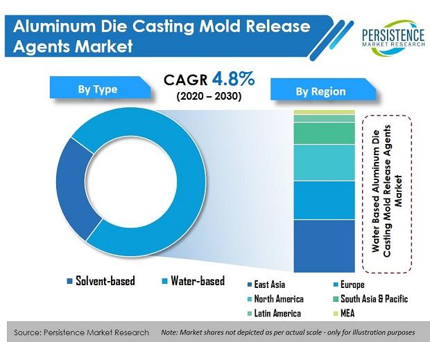 Global Aluminum die-casting mold release agents Market: OverviewDie casting is a casting method in which molten metal under high pressure are poured into molds and hardened. Aluminum die-casting mold release agents are indispensable in releasing heated metal molds. Aluminum die-casting mold release agents exhibit properties such as good spread, low nozzle clogging and mold polluting. Aluminum die-casting mold release agents contain special silicone oil which prevents burning at high temperatures.