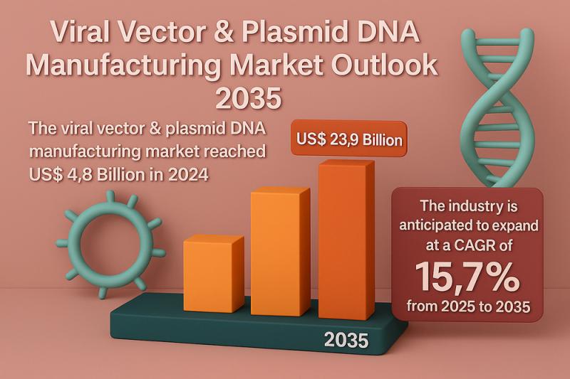 The global viral vector & plasmid DNA manufacturing market is witnessing an extraordinary growth trajectory, reflecting the rapid advancement of gene and cell therapy technologies worldwide. Valued at US$ 4.8 billion in 2024, the market is projected to reach an impressive US$ 23.9 billion by 2035, expanding at a compound annual growth rate (CAGR) of 15.7% between 2025 and 2035. The surge is primarily driven by the increasing adoption of…