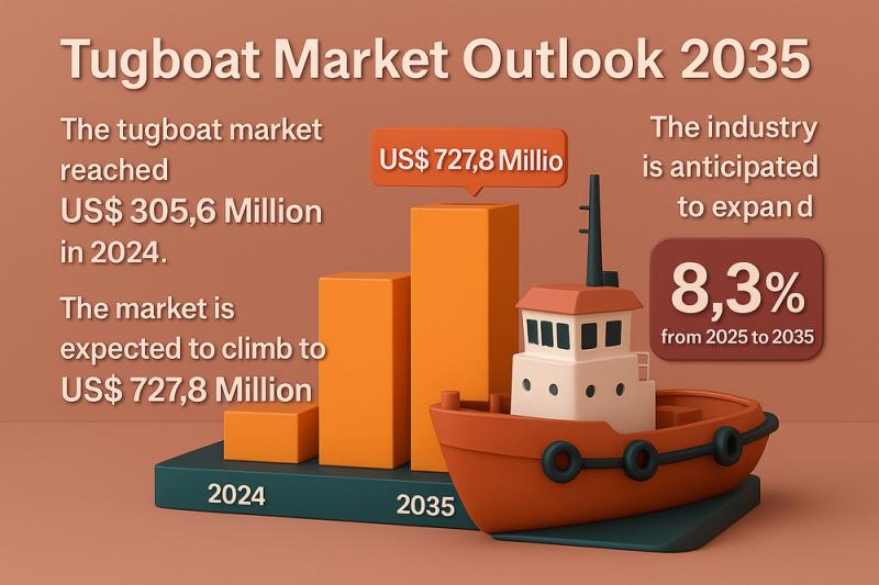 The global tugboat market is entering a new era of technological advancement, environmental innovation, and strategic expansion. Valued at US$ 305.6 million in 2024, the industry is projected to reach US$ 727.8 million by 2035, registering a compound annual growth rate (CAGR) of 8.3% from 2025 to 2035. This strong growth trajectory is fueled by rising maritime trade, expanding offshore energy operations, and a growing shift toward hybrid and electric…