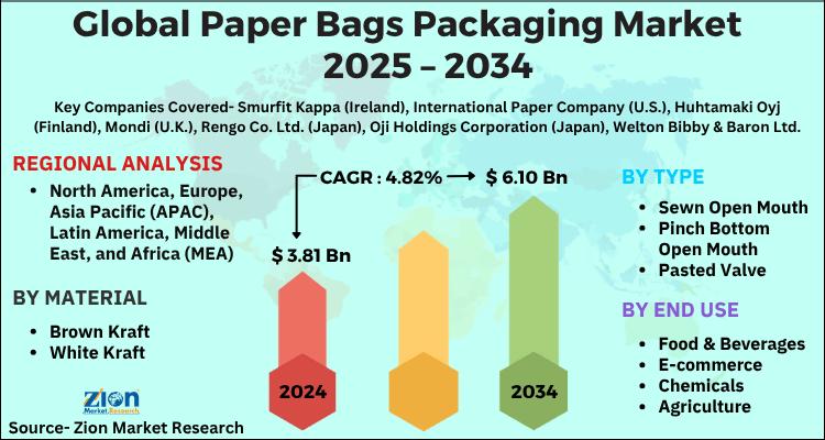 Paper Bags Packaging Market to Reach USD 6.10 Billion by 2034, Expanding at 4.82 …