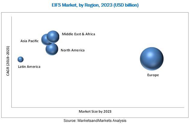 The report "Exterior Insulation and Finish System (EIFS) Market by Product Type (PB, PM), Insulation material (EPS, MW), Component (Adhesive, Insulation board, Base coat, Reinforcement, Finish coat), End-use industry, and Region - Global Forecast to 2023", The EIFS market size is projected to grow from USD 60.68 billion in 2018 to USD 108.11 billion by 2023, at a CAGR of 12.24%. This market is witnessing considerable growth due to the increasingly stringent regulations to reduce greenhouse gas emission, reduction in energy consumption and its related cost, and presence of stringent building energy codes in regions such as North America and Europe. Rebate and tax credit from governments for energy-efficient homes and buildings also act as key factors driving the growth of the EIFS market.Download PDF Brochure @ https://www.marketsandmarkets.com/pdfdownloadNew.asp?id=58301028