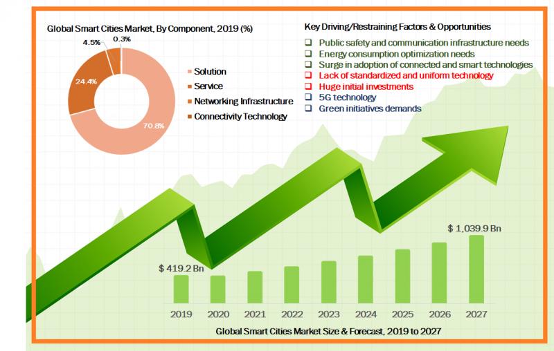 According to the research study published, The Global Smart Cities Market was valued at $ 419.2 billion in 2019. The factor impacting the overall growth of well intervention market growth include public safety and communication infrastructure needs, energy consumption optimization needs, and surge in adoption of connected and smart technologies.GET FREE Sample Press Release or PDF Copy NOW!