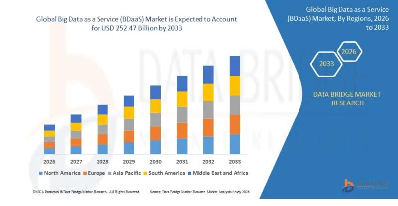As per Data Bridge Market Research analysis, the Big Data as a Service (BDaaS) Market was estimated at USD 31.14 billion in 2025. The market is expected to grow from USD 40.45 billion in 2026 to USD 252.47 billion in 2033, at a CAGR of 29.90% during the forecast period with driven by the rising demand for scalable data analytics, increasing cloud adoption, and growing enterprise focus on real-time…