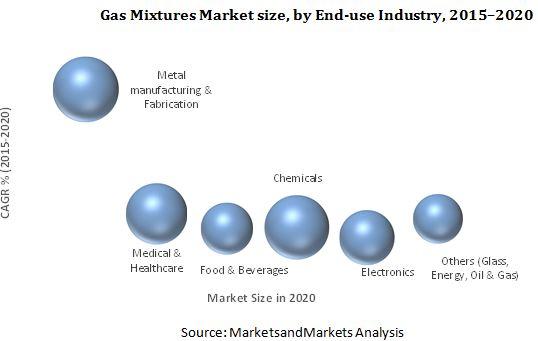 The report "Gas Mixtures Market by Mixture Type (O2, N2, Co2, AR, H2, and Specialty Gas), End-Use Industry (Chemical, Medical & Healthcare, Food & Beverage, Electronics), Storage & Distribution Mode (Tonnage, Merchant Liquid), & Region - Global Forecast to 2020", the gas mixtures market size is estimated to grow from USD 28.20 Billion in 2015 to USD 36.76 Billion by 2020, at a CAGR of 5.44%. Factors such as increasing demand for electronic products and growing demand from the healthcare sector drive the gas mixtures market. However, high equipment costs and intricate manufacturing processes act as a restraint for the market. Growth of the chemical industry in the developing and under-developed regions provides an opportunity to the gas mixtures market to grow even further.Download PDF Brochure @ https://www.marketsandmarkets.com/pdfdownloadNew.asp?id=133815212