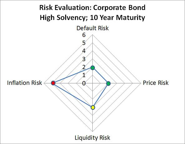To explain our assessment based on school marks and our evaluation criteria it is described with the following example. The risk evaluation of a corporate bond from a solid company with 10-year maturity: