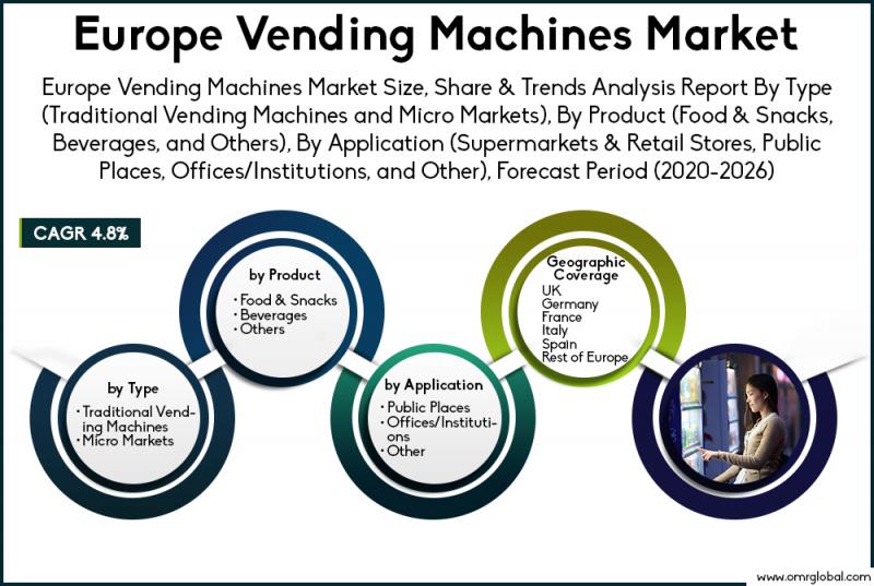 The European vending machines market is anticipated to grow with a considerable CAGR of 4.8% during the forecast period (2020-2026). The market will be influenced by the presence of a huge number of vending machines across the region. As per the European Vending Association, there are approximately 4.0 million vending machines in Europe, that dispense over 90 million food and drink items on the daily basis. Additionally, the high adoption rate of vending machines by the offices and workplaces in the region is also significantly influencing the growth of the market. According to the European Vending Association, 80% of vending machines are located in the workplace.To learn more about this report request a free sample copy @ https://www.omrglobal.com/request-sample/europe-vending-machines-market