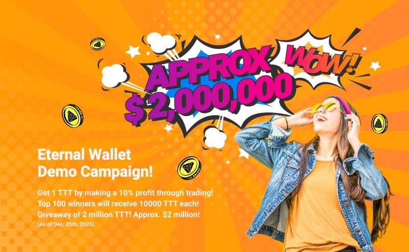 Atom Solutions is giving away a total of $2,000,000!To celebrate the start of our crypto asset management platform service “Eternal Wallet”, Atom Solutions Co., Ltd. (hereinafter referred to as “Atom Solutions”) will, from Jan. 11th, 2021, host a Demo Trade Contest following the below guidelines.