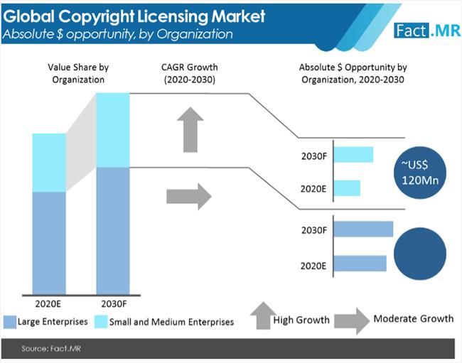 Fact.MR, in its new offering, presents an unbiased analysis of the global copyright licensing market, presenting historical demand data (2015-2019) and forecast statistics for the period of 2020-2030. The study delivers essential insights on the copyright licensing market on the basis of type (literature works, films, music, artistic works, architectural designs and other), organization (Large Enterprises and Small and Medium Enterprises (SMEs)) and vertical (music and entertainment, architecture, animation, art & graphics and others) across seven major regions.