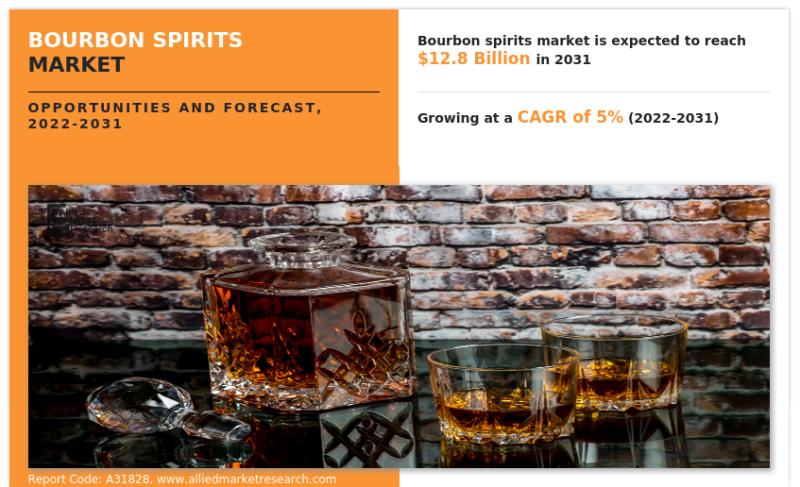 Bourbon spirits market was valued at $7.8 billion in 2021, and is estimated to reach $12.8 billion by 2031, growing at a CAGR of 5% from 2022 to 2031.