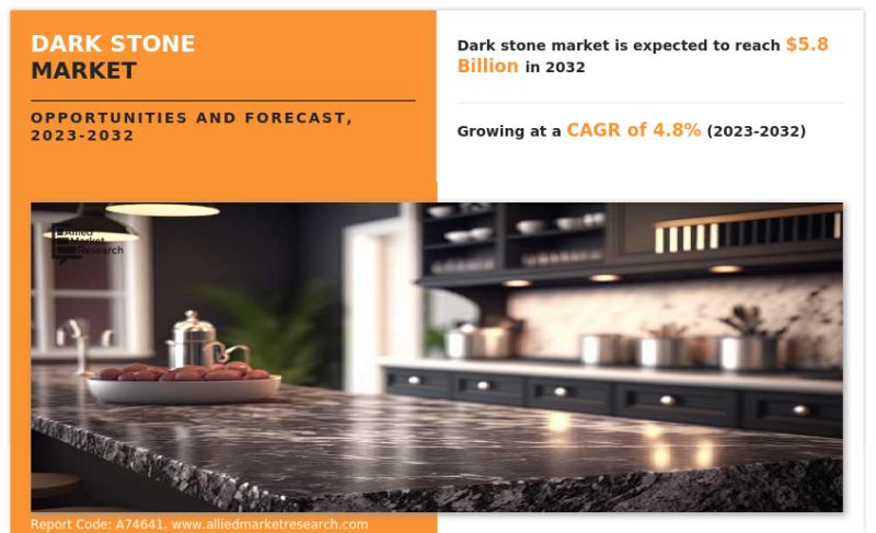 Allied Market Research published a report, titled, "Dark Stone Market by Type (Marble, Granite, Limestone, Others), by Application (Flooring, Memorial Arts, Wall Cladding, Others), by End User (Residential, Commercial): Global Opportunity Analysis and Industry Forecast, 2023-2032."According to the report, the global dark stone industry was estimated at $3.7 billion in 2022 and is anticipated to hit $5.8 billion by 2032, registering a CAGR of 4.8% from 2023 to 2032.