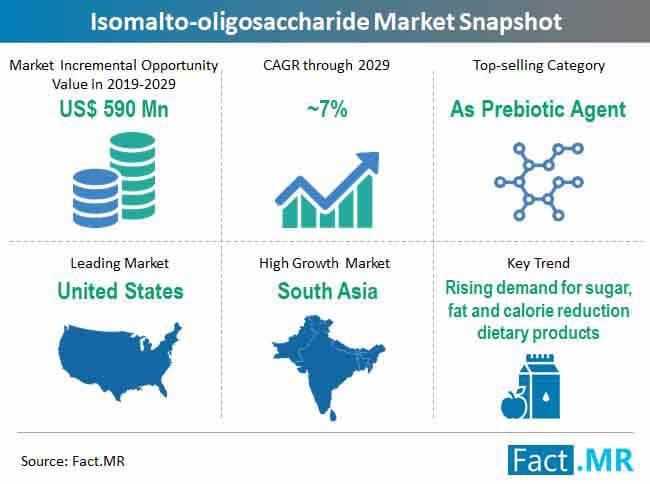 The Fact.MR study opines that rising demand for non-GMO and allergen-free prebiotics in line with an increased focus of manufacturers on improving the quality of nutritional products will drive sales of isomalto-oligosaccharide.