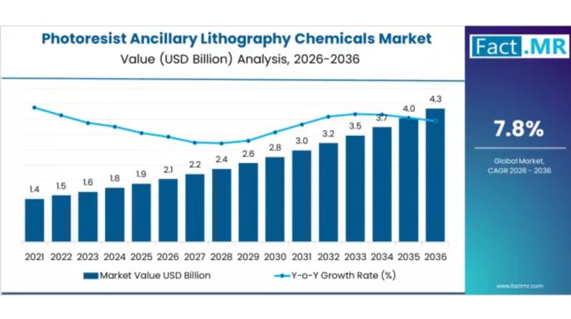 The global photoresist ancillary lithography chemicals market is poised for strong growth, driven by rising demand for advanced semiconductor manufacturing and high-precision microelectronics. According to a recent analysis by Fact.MR, the market is projected to expand from USD 2.05 billion in 2026 to USD 4.34 billion by 2036, registering a robust CAGR of 7.8% over the forecast period.