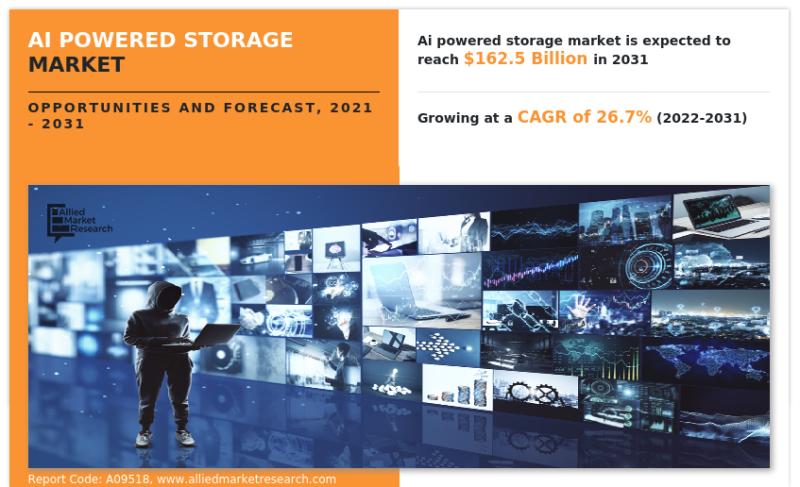 Allied Market Research published a new report, titled, " AI-Powered Storage Market Reach USD 162.5 Billion by 2031 Growing with 26.7% CAGR ." The report offers an extensive analysis of key growth strategies, drivers, opportunities, key segments, Porter's Five Forces analysis, and competitive landscape. This study is a helpful source of information for market players, investors, VPs, stakeholders, and new entrants to gain a thorough understanding of the industry and…