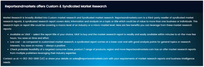 Reports and Markets is not just another company in this domain but is a part of a veteran group called Algoro Research Consultants Pvt. Ltd. It offers premium progressive statistical surveying, market research reports, analysis & forecast data for a wide range of sectors both for the government and private agencies all across the world. The database of the company is updated on a daily basis. Our database contains a variety of industry verticals that include: Food Beverage, Automotive, Chemicals and Energy, IT & Telecom, Consumer, Healthcare, and many more. Each and every report goes through the appropriate research methodology, Checked from the professionals and analysts.