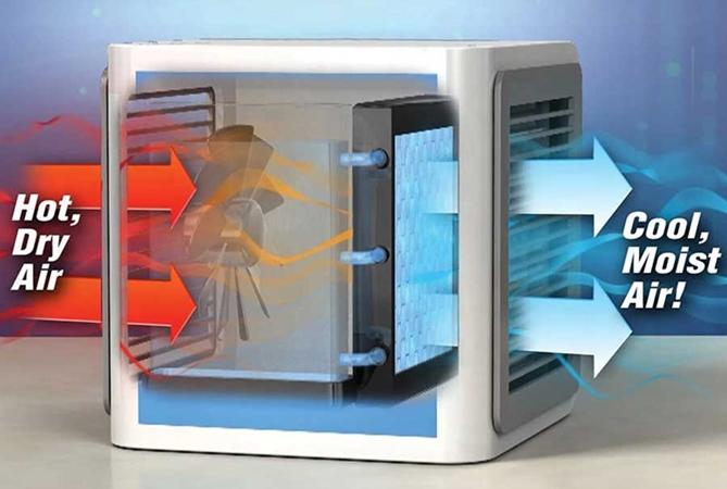 BluePrint Gadgets Mini Air Conditioner works dependent on Hydrocool innovation. It retains hot air and goes it through a tank loaded up with chilled water to yield cool air.