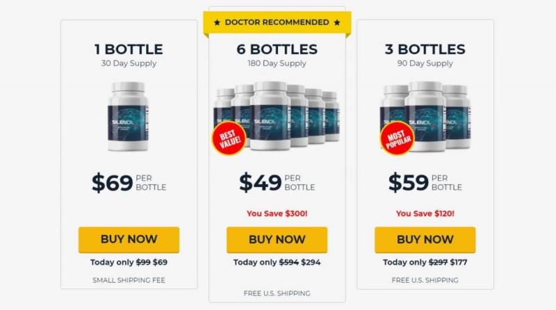 Silencil is offered as either a single bottle or part of a 3 or 6-bottle package. The bundle plan supplies substantial savings with cost-free shipping. Additionally, you can obtain bulk price cuts when you choose the 6-bottle option. Below are the Silencil costs
