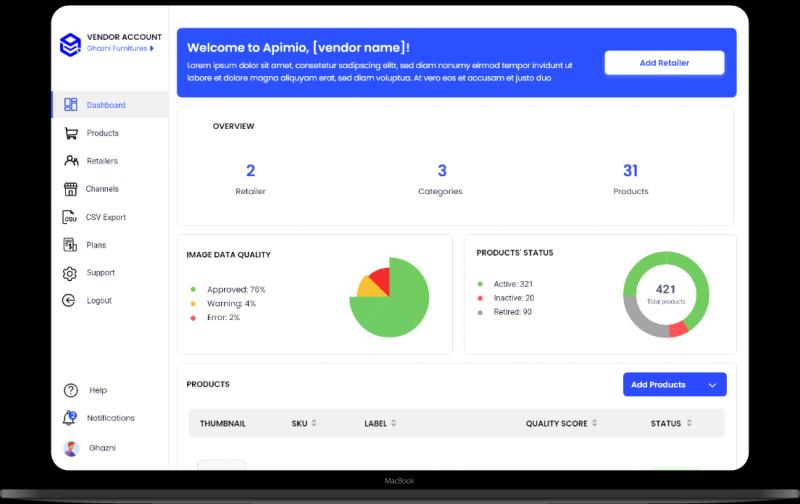 Apimio has also updated its User Interface for a better and smoother experience for vendors and retailers. Apimio now provides a brief overview and data summaries, such as image data quality. Apimio’s data quality index helps users follow and maintain its image quality according to different standards of every e-commerce platform.