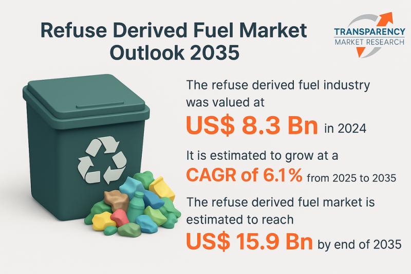 The global Refuse Derived Fuel (RDF) market is gaining remarkable traction as industries and governments across the world increasingly adopt waste-to-energy (WtE) solutions. According to the latest market research, the RDF industry was valued at US$ 8.3 billion in 2024 and is expected to reach US$ 15.9 billion by 2035, expanding at a compound annual growth rate (CAGR) of 6.1% from 2025 to 2035.