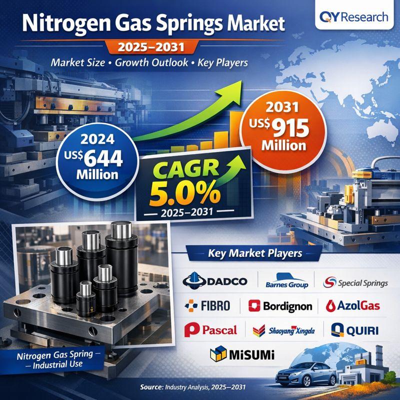 According to QY Research, the newly released report titled "Nitrogen Gas Springs Market Share and Ranking, Overall Sales and Demand Forecast 2025-2031" provides an in-depth, data-backed assessment of the global nitrogen gas…